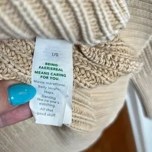 This beautiful oatmeal color AERIE sweater is oversized (see measurements in photos) and longer length for the perfect fit over leggings! Dropped sleeves give it a slouchy casual vibe. Made of 100% cotton, you can feel the quality of this piece. Worn only a few times and always laundered to maintain integrity. Personal collection piece ~ Amber