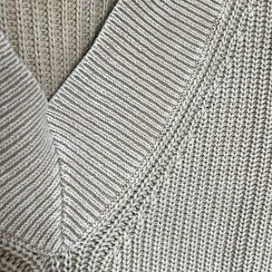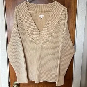 AERIE | 100% Cotton Chunky Knit V-Neck Sweater in Tan | Large