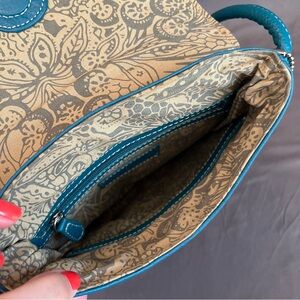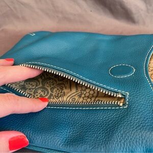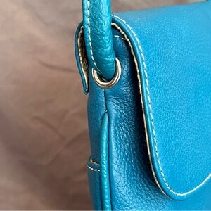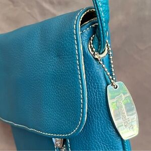 Tignanello TURQUOISE BLUE TEAL Small Pebble Leather Crossbody Flap Bag ~EUC