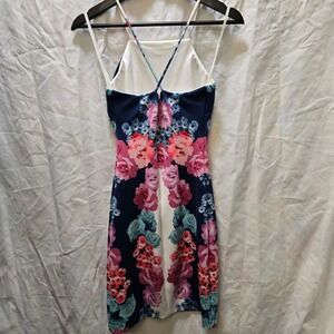 Keywords: Guess, Los Angeles, Floral Dress, Mini Dress, Sleeveless, Party Dress, Cocktail Dress, Summer Dress, Women's Dress, Size 2, Blue Dress, Pink Dress, Floral Print, Spaghetti Strap