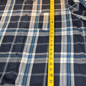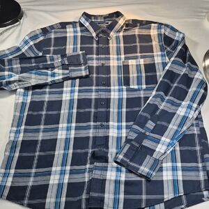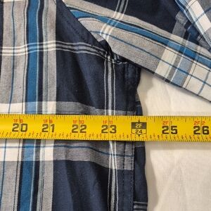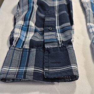 Casual American Rag long sleeve button-down with navy and white plaid. Ideal for everyday wear.