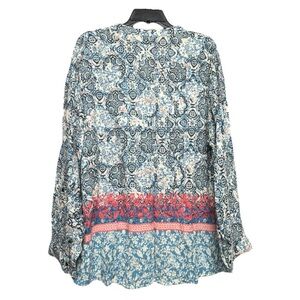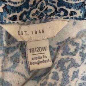 EST.1946 Blue and White Buttoned Blouse with Mandarin Collar Size 18/20W