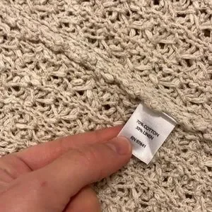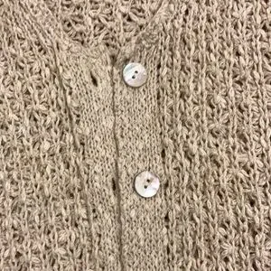 Stylish cream knit vest. Sleeveless design. Button-up front. Perfect for layering.
