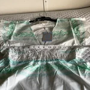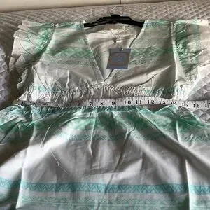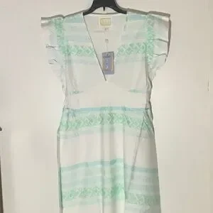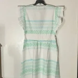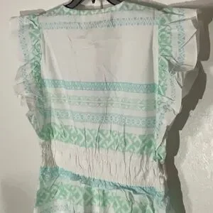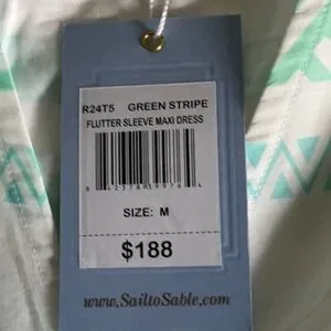 Elegant maxi dress with green patterns. Features ruffled sleeves and a flattering fit.