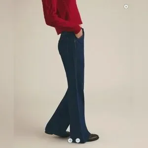 A new flare favorite just debuts. The Olympia Flare is a low slung style that's relaxed at the hips and thigh with a flare hem that sweeps the floor. Wide slant pockets and triple needle top-stitch give this rigid indigo denim an elevated look. (Favorite Daughter embroidery on the back waistband, of course.)