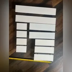One 12” shelf has some minor damage from attempting to hang it the first time, doesn’t affect it at all! I just had a picture frame infront of it