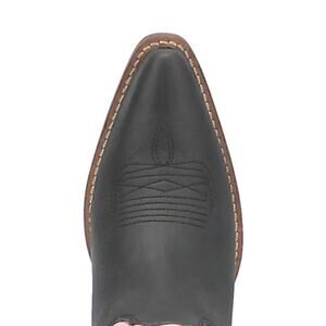 These statement western boots feature bold black leather accented with intricate pink floral embroidery for a striking, feminine touch. Crafted for both style and comfort, they bring a playful twist to classic cowboy boot design.