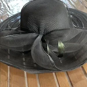 This elegant black wide-brim hat is perfect for adding a touch of sophistication to any outfit. Its classic design makes it a versatile accessory for various occasions.