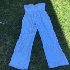 Dress The Population Andy strapless wide leg white sequin jumpsuit in excellent condition. Size Large.