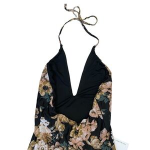 NWT Beach Riot One Piece Halter Swimsuit in Black Floral Size Small