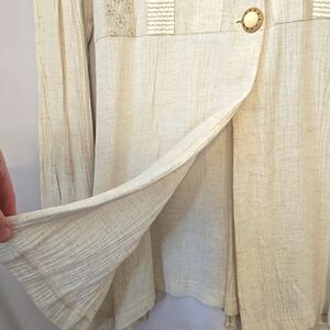 Benjamin A, Tunic, Blouse, Natural, Cream, Buttons, Side Slits, Tie Back, Sz 18