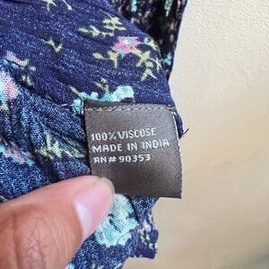 J GEE Blue Floral Smocked Tiered Midi Dress Puff Sleeve Square Neck Women's S