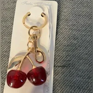 This adorable cherry charm is new in packaging. They are the bigger cherries. Comes with claw clasp and key ring. This is a FASHION accessory !!!!