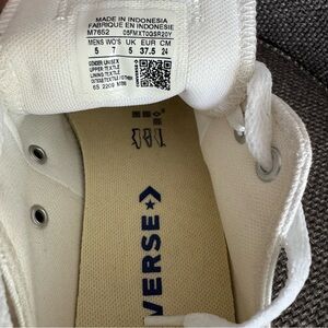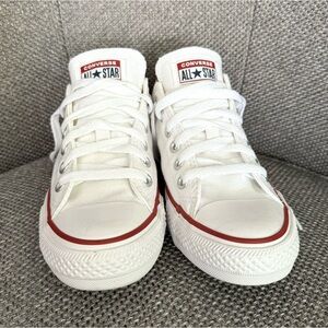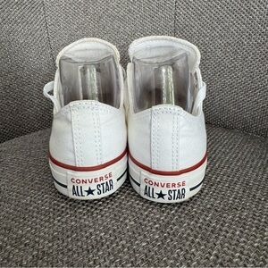 Step out in style….Converse All Star Chuck Taylor white low top sneakers, new without box (NWOB). Timeless and versatile style with lace-up closure, durable canvas upper, cushioned footbed, and signature rubber sole with red and blue stripe detail. Perfect for casual outfits, everyday wear, or adding a classic sporty touch. Women’s size 7.