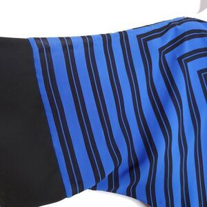 Vintage 80s Waisted Dress Sz 7/8 Blue Black Color Block Floral Rose Geometric