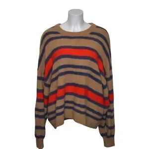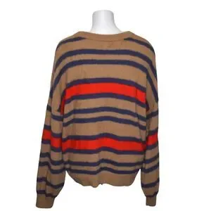 Aerie Oversized Fuzzy Striped Sweater Tan Red Blue Cozy Warm Womens XL