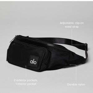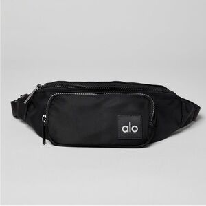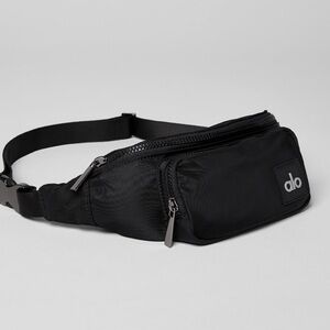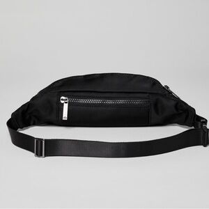 Sleek black crossbody bag. Features adjustable strap. Perfect for on-the-go style.