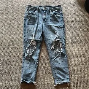 - Stylish distressed blue jeans perfect for a casual look. - - Comfortable fit with a trendy design.