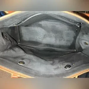 Stylish brown leather handbag perfect for any occasion. Features durable leather handles and a classic design. About 8 inches in height and 1 foot in length. THERE IS SOME DISCOLORATION INSIDE THE HANDBAGS LINING. IN THE CORNERS INSIDE THE HANDBAG NEEDS TO BE CLEANED. YOU THE BUYER WILL BE RESPONSIBLE FOR CLEANING THEM. THERE IS SOME LIME BUILD UP AROUND THE LEATHER AND GOLD HARDWARE. THE CORNER EDGES HAVE SOME WEAR. PLEASE VIEW PHOTOS BEFORE PURCHASING!!!