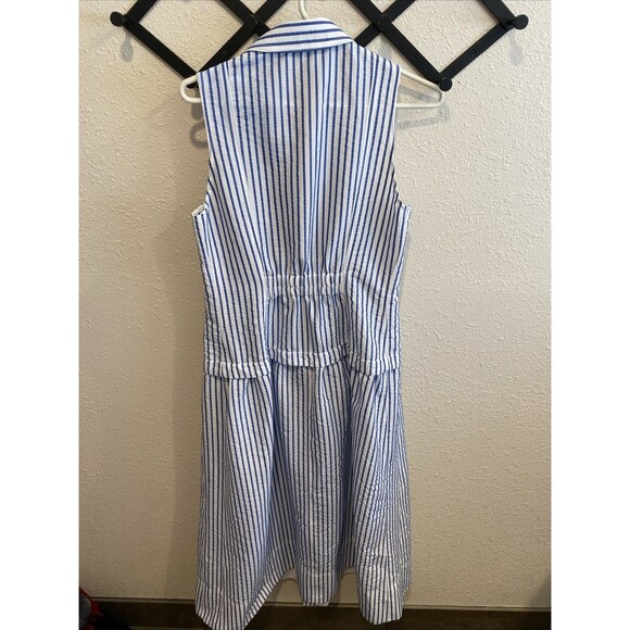 Me+Em Italian Seersucker Stripe Maxi Shirt Dress Italian Cotton Blend Size 6