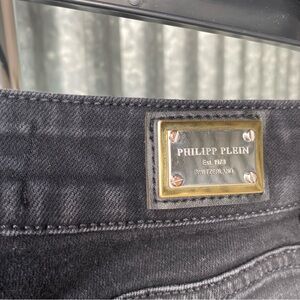 Philipp Plein Black Angel Wing Embroidered Jeggings Size 26