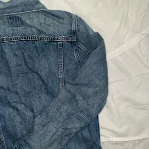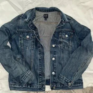 Timeless GAP denim jacket in a medium wash. Features button front closure, chest pockets, and side slit pockets. A versatile layering piece that never goes out of style—perfect for pairing with dresses, tees, or sweaters.