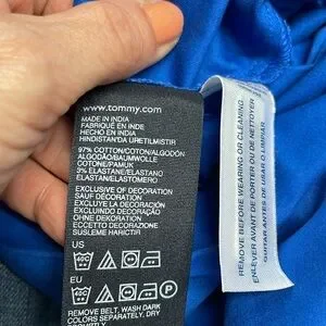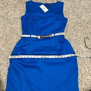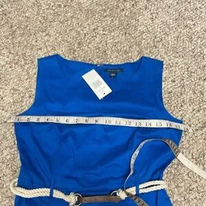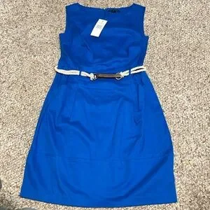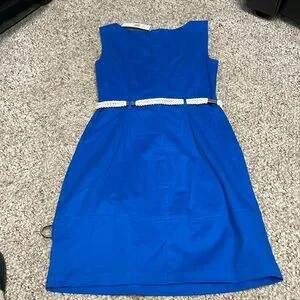 Elegant blue dress by Tommy Hilfiger. Features a stylish white belt. Perfect for any occasion.