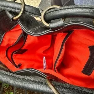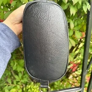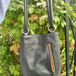Cross-body - Still without the hook, grab the strap on one side to make it longer, so you can sling the bag across your body.