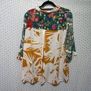 * Rose + Olive Plus Size Button Up 3/4 Sleeve Floral Blouse