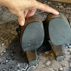 Platform leather sandals with sturdy heels. Wooden base with gold-tone studs. Good times were had, lots more life felt in them! Please make an offer!