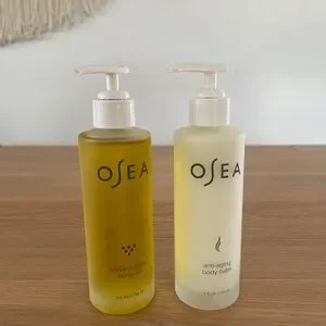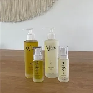 Hi! I have 4 items in this bundle. 5oz unopened bottles of body balm and body oil from Osea, as well as a 1oz travel sizes of each. Would make a great gift! I don’t have boxes for these.