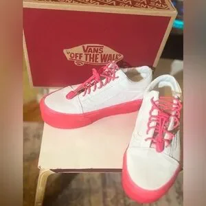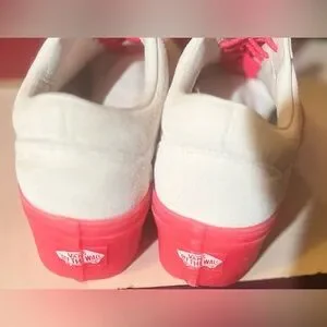 Vans sneakers featuring a white upper and bold pink soles. Ideal for everyday style.