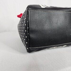 FEATURES: Black and white Minnie Mouse zippered tote bag with interior zippered pocket. It features a lovely red satin bow with white polka dots. By Disney Parks.