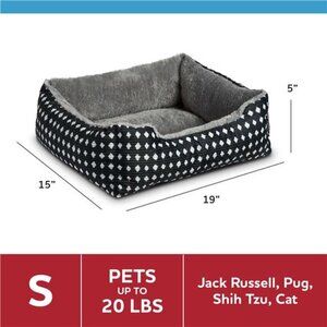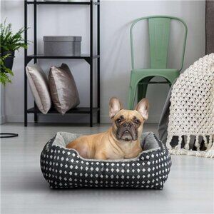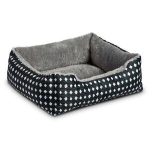 Your pet will drift off to dreamland when they sleep in our lovely Small Cuddler Pet Bed. This cuddler-style cozy pet bed is 19” by 15” and has a soft sleep area with bolstered walls for added comfort and support. This small pet bed is perfect for cats or smaller dog breeds like Chihuahuas, Maltese, Jack Russell Terriers, Pugs, and Shih Tzus. Made with 100% recycled fiberfill, your purchase of this washable dog bed keeps an equivalent of 25+ plastic water bottles from the environment. Expertly crafted with durable materials, this cute dog bed is machine washable for easy care and long life. Your pet will love lazing on the Cuddler Pet Bed.