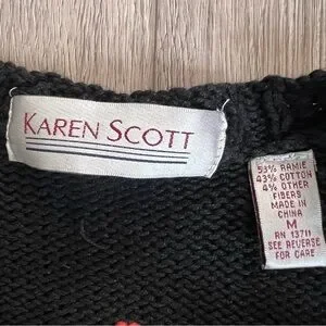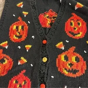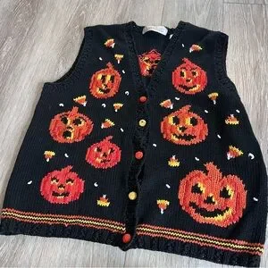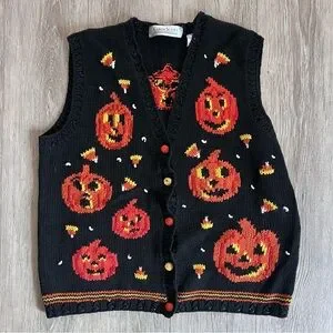 Vintage Halloween Sweater Vest Black Orange Pumpkins