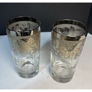 VINTAGE Dorothy Thorpe Silver Fade Grape Vine Highball Glasses Set of 2 MINT