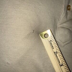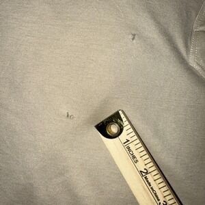 Condition: Fair pre-owned vintage condition with several small pinholes/snags on the front chest near the placket/pocket area as shown in photos; light wrinkling from storage; all buttons intact; no major stains observed.