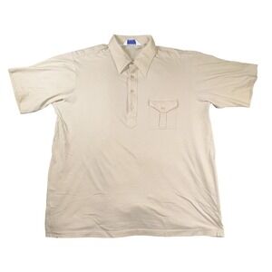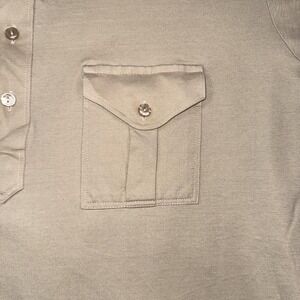 Vintage Nature Knit Polo Shirt Mens Tall XL Khaki Pocket Flap Short Sleeve Retro