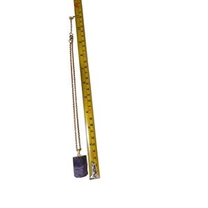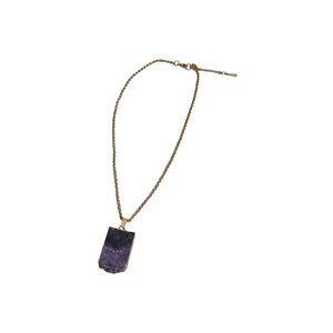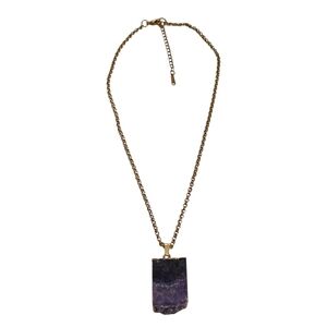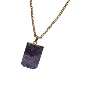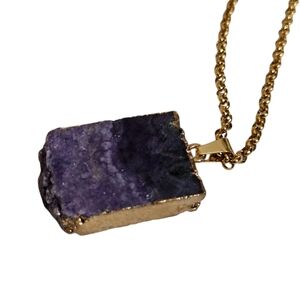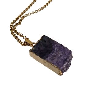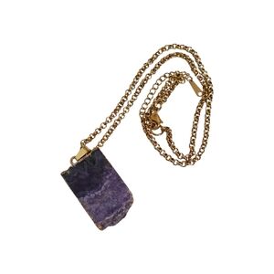Elegant stalactite amethyst gemstone on a gold-tone chain. Perfect for adding a touch of sophistication to any outfit.