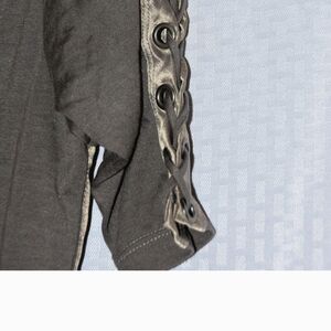 Elevate your style with the Salvage Women's Black Graphic Top. Featuring a bold design, this top is perfect for making a statement. The gold accent adds a touch of elegance to the dress. Listed as a small, but it can definitely fit larger because you can loosen and tighten it with the side ties-ups. This piece is no longer in production, and if you're a SALVAGE lover or just like the style, this should definitely be a staple in your wardrobe.