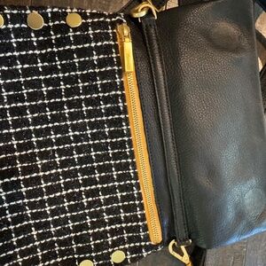 Hammitt VIP bag. Black leather and tweed. Perfect condition. Inside suede liner. Phone pocket on bak. Front zip pocket is perfect for sunglasses, keys or anything you want quick access to. Interior card pocket and two drop pockets.