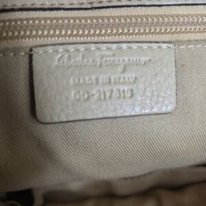 Authentic beige pebbled leather Salvatore Ferragamo shoulder bag.