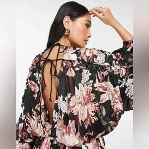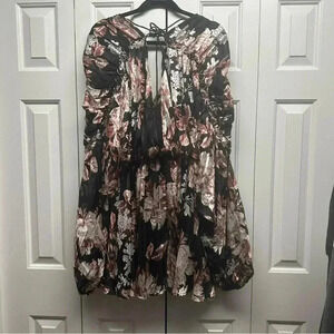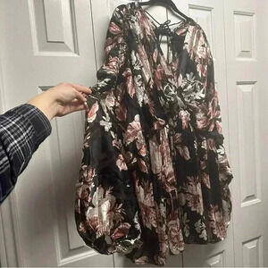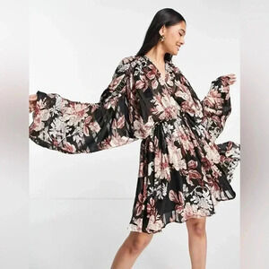 Asos Design Curve Floral Print Long Sleeve Satin Mini dress Size 14 NWOT