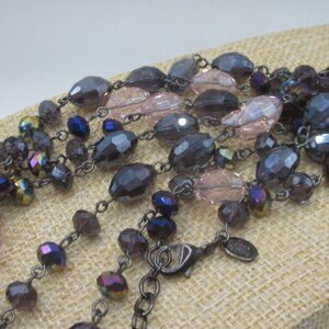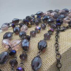 EUC, Joan Rivers Glass Beaded Necklace, shades of purple and oil slick, 30" drop with 1.5" extender, vintage piece