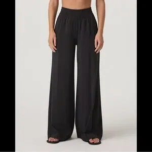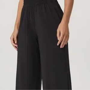 Vuori Villa Wideleg Pant in Black Flowy Wrinkle Resistant Athleisure Lounge