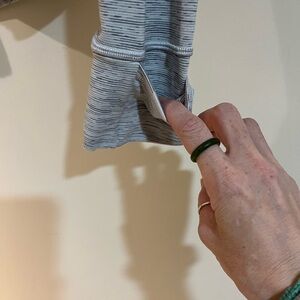 Lululemon White, Gray & Purple Striped Define Oversized Luon Jacket. Cottony soft. Sweat-wicking. Four-way stretch. Supportive & Breathable. Added Lycra® fibre for stretch and shape retention. 2 zipper pockets. Thumbholes and Cuffins™. Elastic zipper pull doubles as an emergency hair tie. Excellent Condition.