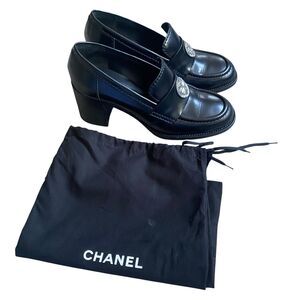 Rare find! This is dressy Chanel block heels shoes, in size EU 40.5/US 10.5. Black color. 100% authentic. Condition: they are in perfect condition, almost no wear. Just minor wear on outsoles.