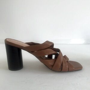 JOIE $170 Luz Crisscross Mule Cognac Leather Stacked Heel Sandals Shoes Size 6.5