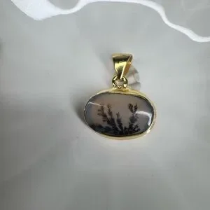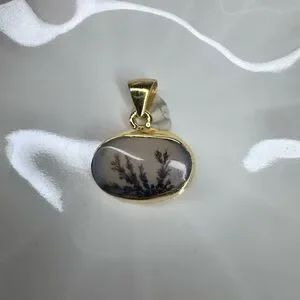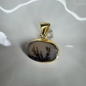 Scenic Dendritic Agate Pendant | 18K Gold Plated over 925 Silver | Made in India