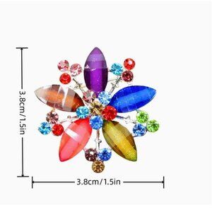 Betsey Johnson Brooch Multicolor Crystal Flower Pin Silver Tone